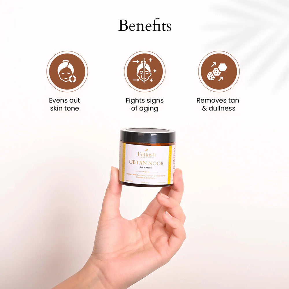- Ubtan Noor Face Mask (100g): Repairs sun damage, reduces pigmentation, and adds an instant glow in just 15 minutes.